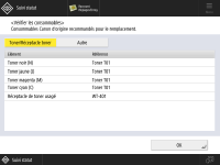 Il est possible que certains éléments ne soient pas affichés en fonction de l'état d'installation des équipements en option. |