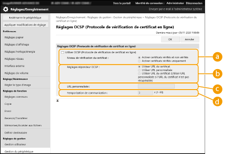 [Réglages OCSP (Protocole de vérification de certificat en ligne)].