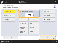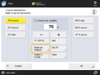 Si vous avez spécifié <Taux XY auto>, sélectionnez le papier dans <Choisir papier>. Si vous ne spécifiez pas de format papier, le taux de reproduction est automatiquement réglé selon le papier chargé dans la cassette 1.