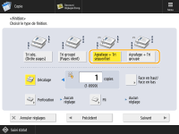 Sélectionnez <Agrafage + Tri séquentiel> ou <Agrafage + Tri groupé> et appuyez sur <Suivant>.