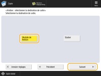 Cet écran ne s'affiche que si le module de finition et le "Module de réception grande capacité-J" sont installés. Si cet écran ne s'affiche pas, passez à l'étape suivante.