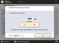 N'utilisez pas cette fonction avec du papier sur lequel des logos ou des motifs sont déjà imprimés (papier préimprimé) ou si les feuilles de papier sont sales. Vous devez ajouter suffisamment de feuilles de papier dans le magasin papier pour imprimer les pages de réglage. Si un bourrage papier se produit pendant un travail avec le réglage automatique, les pages de réglage peuvent ne pas être imprimées. |