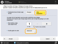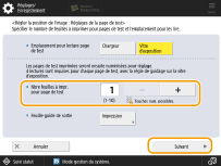 S'il est nécessaire de régler la position d'image de manière plus précise après l'avoir ajustée avec la feuille de guidage, sélectionner <Ne pas utilis. le scanner> et effectuer les réglages nécessaires pour les éléments de réglage d'ajustement individuels. |