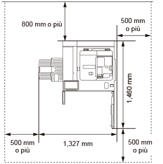Resistenza di carico del pavimento | Verificare le specifiche della resistenza di carico del pavimento consultando il costruttore dell'edificio in cui è prevista l'installazione della macchina. | ||