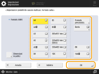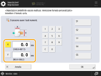 Premere <X> o <Y> per inserire la lunghezza di ciascun lato usando i tasti numerici. ![]() Se si registra il formato carta usato frequentemente sui pulsanti da <S1> a <S5>, è possibile richiamarlo tramite la pressione di un solo tasto. Registrazione della carta di formato libero (carta di formato personalizzato) | |