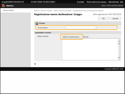 È anche possibile gestire gli elenchi di indirizzi di gruppi di utenti abilitando solo gli utenti che dispongono dei privilegi di amministratore a registrare/modificare le destinazioni dalla IU remota. <Utilizzo elenco indirizzi gruppi di utenti>