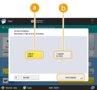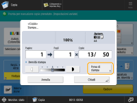 <Prova di stampa> viene visualizzato quando si eseguono più copie nel modo Fascicolazione, Sfalsamento o Pinzatura. <Prova di stampa> può essere usato quando è collegato "Staple Finisher-AG", "Booklet Finisher-AG" o "High Capacity Stacker-J". |