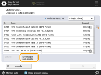 È possibile utilizzare l'elenco a comparsa Ordinamento elenco per ordinare l'elenco per data di registrazione, nome o grammatura base in ordine crescente o decrescente. Le informazioni dettagliate per la carta selezionata possono essere visualizzate premendo <Dettagli> È possibile modificare le pagine premendo [  ]/[  ] per selezionare e registrare tipi di carta visualizzati in altre pagine. |