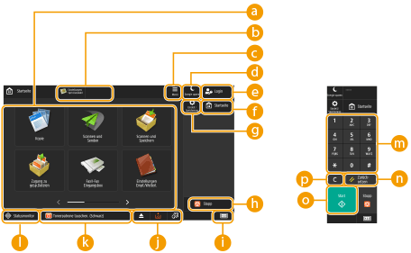 Mit diesen Tasten öffnen Sie die Grundfunktionsbildschirme wie "Kopieren" und "Scannen und Senden".