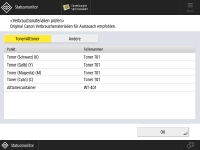 Überprüfen Sie den Artikelnamen der Verbrauchsmaterialien.
