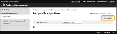Wählen Sie den Typ des Profils und klicken Sie auf [Exportstart].