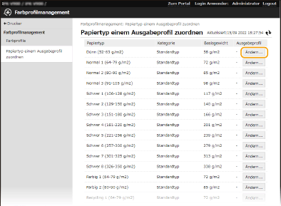 Klicken Sie auf [Ändern...] entsprechend dem Papiertyp, dem Sie ein Ausgabeprofil zuordnen möchten.