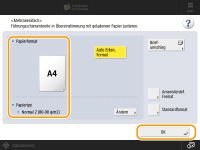 Prüfen Sie das Papierformat und den Papiertyp, und drücken Sie <OK>.