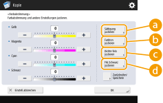 | | Stellen Sie die Dichte von Gelb, Magenta, Cyan und Schwarz separat ein. |