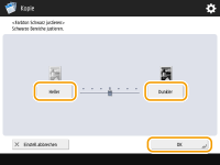 <Farbton Schwarz justieren>Nehmen Sie die Einstellung in Richtung von <Heller> vor, um zu verhindern, dass das Bild zu dunkel wird. Nehmen Sie die Einstellung in Richtung von <Dunkler> vor, wenn Text und Bilder zu hell sind. Wenn die Einstellung abgeschlossen ist, drücken Sie <OK>.