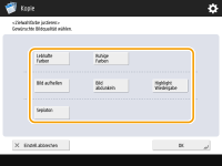 Wenn Sie ein Dokument in der Mailbox mit <Zugang zu gespeicherten Dateien> drucken, können Sie weder <Lebhafte Farben> noch <Ruhige Farben> angeben.