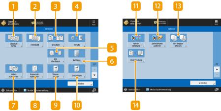 Je nach Funktion finden Sie nähere Einzelheiten unter der Funktion <Kopieren>. |