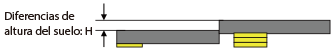 Intervalo vertical del suelo (Este método se usa cuando hay un escalón en el suelo). | Coloque dos placas de suelo una al lado de la otra y colóquelas en el suelo donde está programada la instalación del equipo. De acuerdo con el método de medición de "Uniformidad del suelo", coloque una placa de suelo horizontalmente. Y, luego, coloque otra horizontalmente de la misma manera. Mida la diferencia de altura entre dos placas de suelo.