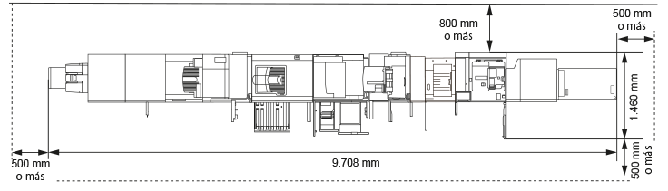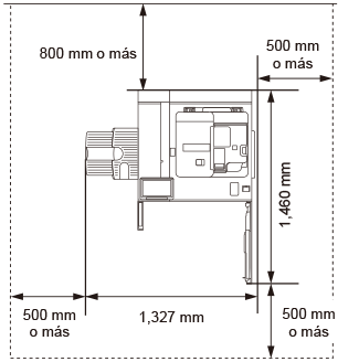 Carga soportada del suelo | Confirme las especificaciones de la carga soportada del suelo al contratista del edificio donde está programada la instalación del equipo. | ||