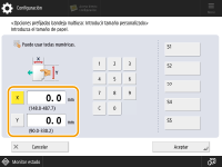 Pulse <X> o <Y> para introducir la longitud de cada cara mediante las teclas numéricas. ![]() Si registra el tamaño de papel que utiliza con más frecuencia en los botones <S1> a <S5>, puede recuperarlo con un solo toque. Registrar papel de tamaño libre (tamaño de papel personalizado) | |