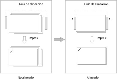 Si la posición de la guía de alineación está demasiado cerca del papel, el papel puede atascarse o curvarse. Asegúrese de realizar el ajuste fino de la posición de la guía de alineación.