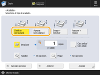 ![]() | Al copiar dos copias o más desde el alimentador, puede seleccionar intercalar o agrupar para el orden de las impresiones. Seleccione "Intercalar" para imprimir en orden de páginas secuencial. Seleccione "Grupo" para imprimir paquetes de cada página, como por ejemplo, 10 hojas para la primera página , 10 hojas para la segunda página, etcétera. |