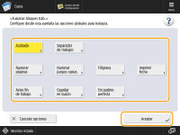 Especifique las opciones que se aplican a todos los originales y pulse <Aceptar>.