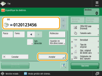 Introduzca un número de fax utilizando las teclas numéricas y pulse <Aceptar>.