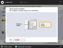 Si necesita ajustar la posición de la imagen con mayor precisión después de ajustarla utilizando la página de prueba, seleccione <No usar escáner>→<Ajustar posición de imagen> y realice los ajustes necesarios para los elementos de configuración de ajuste individual. |