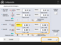 <Zoom (d)>: | Aumenta o reduce la imagen en la dirección perpendicular a la dirección de alimentación en función del índice introducido. |