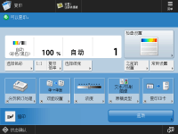 在<主页>屏幕上,按功能按钮会显示“基本功能”屏幕,可以从该屏幕访问复印和扫描等基本功能。尽管“基本功能”屏幕上的显示屏幕和设置项目因功能而异,但也可以根据需要更改设置。自定义基本功能屏幕