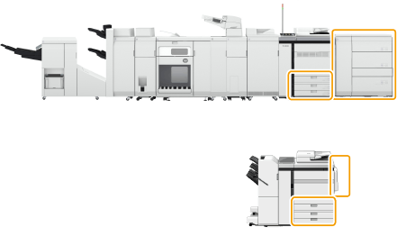 要使用的纸张来源和要遵循的纸张添加方法根据您所用的纸张类型和尺寸而变化。关于可用纸张类型和尺寸的详细信息请参阅