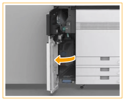 触摸面板显示屏幕上出现提示更换废粉收集容器的信息前,请勿更换。 但是,更换前会出现一条信息提示您准备新的废粉收集容器,此时请勿更换废粉收集容器。 使用过的废粉收集容器将由您的服务代表进行收集。 使用过的墨粉不可以重复使用。请勿将新墨粉和使用过的墨粉混合在一起。 确保使用本机专用的废粉收集容器。 |