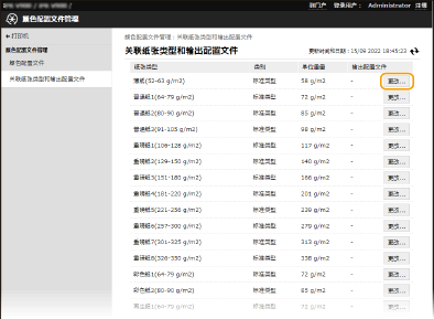单击对应于想要与输出配置文件关联的纸张类型的[更改...]。