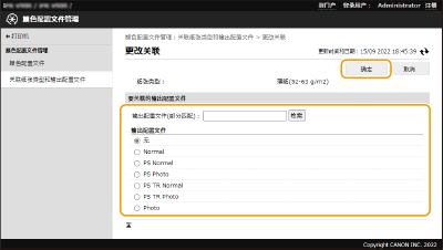 关联输出配置文件和纸张类型