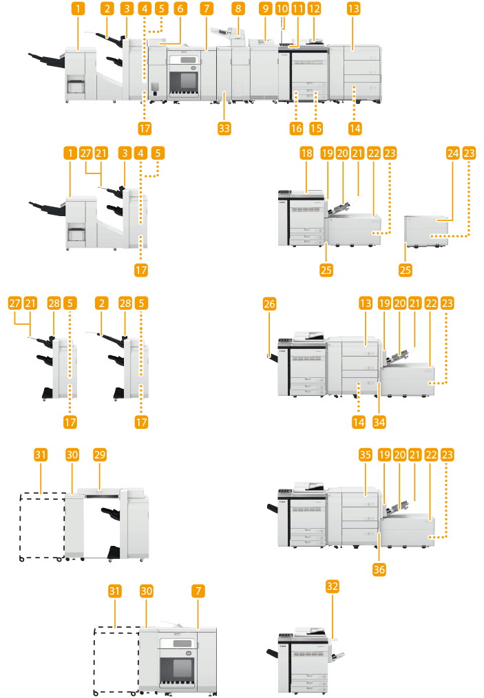 如果安装了“供纸通路连接组件-B”,则可连接“旁路堆栈供纸器-D”等供纸器。