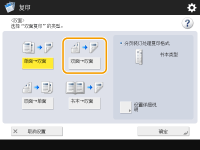 设置<原稿类型>和<分页装订处理复印格式>,然后按<确定>。