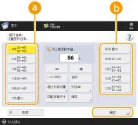 对于<原稿尺寸>和<复印尺寸>,请同时输入纵向尺寸或横向尺寸。例如,如果<原稿尺寸>输入纵向尺寸,则<复印尺寸>也输入纵向尺寸。