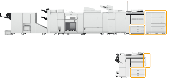 용지 카세트와 용지 급지용 각 옵션 장치는 다음 그림에 나와 있습니다.