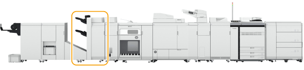 다음 그림에는 "Staple Finisher-AC" 또는 "Booklet Finisher-AC"의 위치가 나와 있습니다.