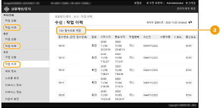 복사, 인쇄, 전송, 수신된 문서의 로그를 표시할 수 있습니다.