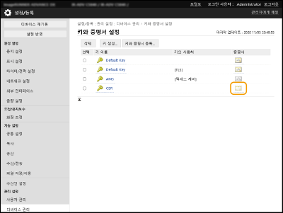 CSR을 생성한 키가 키 및 인증서 목록 화면에 표시되지만, 단독으로는 사용할 수 없습니다. 이 키를 사용하려면, CSR을 바탕으로하여 이후에 발행된 인증서를 등록해야 합니다. 키에 인증서 등록하기 |