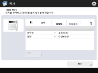 <원고 종류> 및 <복사 마무리 형식>을 설정하고 <확인>을 누릅니다.