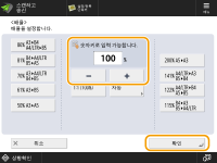 원고를 피더에 놓고 <긴 원고>를 선택합니다. 100%의 확대/축소 비율만 설정할 수 있습니다.