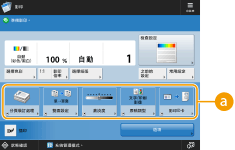 可將基本功能畫面顯示的設定按鈕(影印和掃描)變更為 <選項> 中的其他設定按鈕。在基本功能畫面放置常用設定按鈕,就能夠更有效地使用功能。此外,透過個人認證管理登入後,您可顯示針對每個使用者所自訂的不同基本功能畫面。