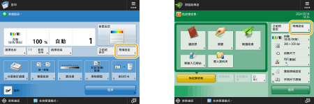 功能快速鍵按鈕可以在各功能畫面上顯示。註冊常用功能可讓您持續使用功能,無須返回 <首頁> 畫面。