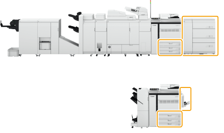 紙匣和各種進紙用選購設備的位置如下圖所示。
