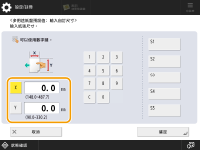 使用數字鍵按 <X> 或 <Y> 輸入各邊的長度。 ![]() 如果將按鈕 <S1> 的常用紙張尺寸註冊到 <S5>,只要按一下即可叫用。註冊尺寸不限的紙張(自訂尺寸紙張) | |