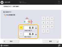 指定 <X> 邊和 <Y> 邊的長度。按 <X> 或 <Y> 以便使用數字鍵輸入各邊的長度。