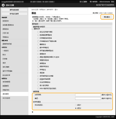 從 [安全性級別] 中選擇安全性級別,按一下 [開始匯出]